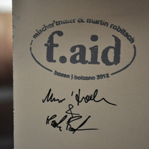 ‚F.aid‘ is an easy DIY-method to built new furniture out of single old waste chipboards or other fibreboards by fixing them together with bandages. Medical fiberglas castings harden quickly with just a bit of water. They give stability to the furniture and an unconventional look. Thanks to the easy method various furniture types and shapes are possible, depending on the size of the boards.