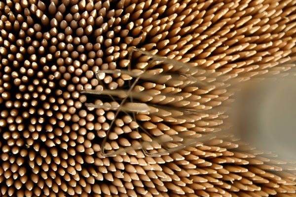 Mikoto is a bamboo box filled with thousands of wooden skewers which can be home to a set of steak knives or kitchen blades of any size and format even scissors or a sharpening steel. The skewers adjust to however you want to organize your knifeblock wihtout guessing in which slot the knive has to go.